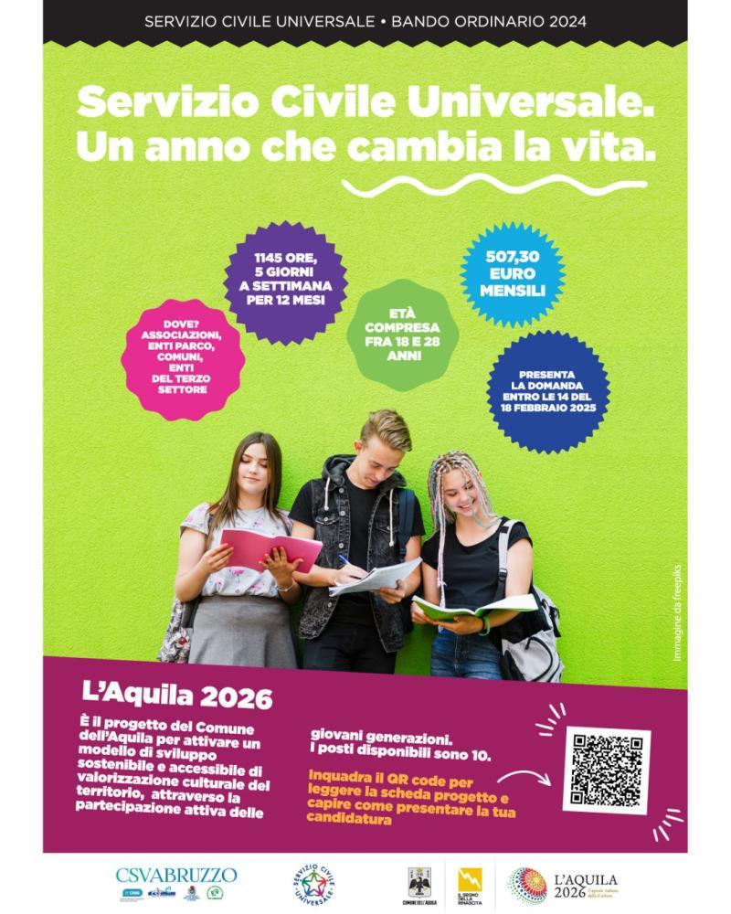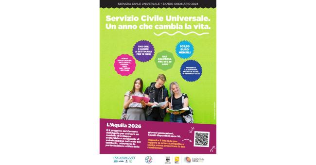 Servizio Civile Universale: 10 posti disponibili al Comune dell’Aquila.